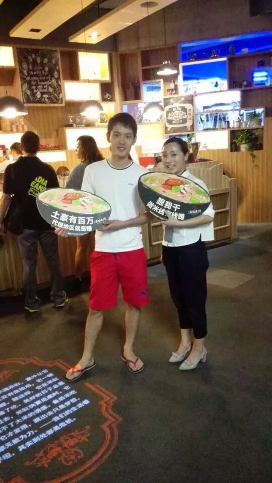 2015年8月14日,感謝江蘇省宿遷市劉先生和秦先生、浙江省湖州市朱女士、河北省廊坊市毛女士和李先生、甘肅省蘭州市蘆小姐、福建省福州市陳先生、貴州省貴陽市張小姐和單先生、河南省洛陽市張先生、河南省信陽市鐘小姐、陜西省寶雞市呂先生、杭州市拱墅區王先生、崔世英超先生、杭州市舟山東路侯先生、天津市王先生夫婦對公司的信任,在考察了十秒到云南過橋米線總部后,簽約加盟十秒到云南過橋米線加盟店。十秒到云南過橋米線店開一家,火一家。相信這會給予眾多十秒到的創業者們更大的信心與動力,一起在十秒到的熱潮中生意越做越火爆。
