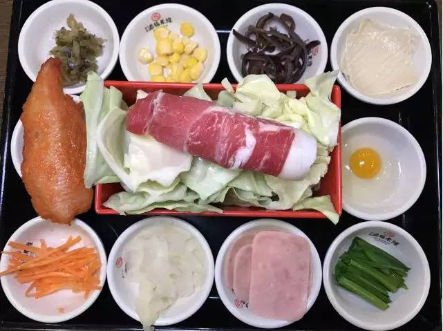 牛肉卷、大塊里脊、午餐肉、雞蛋、玉米、白菜、胡蘿卜......
