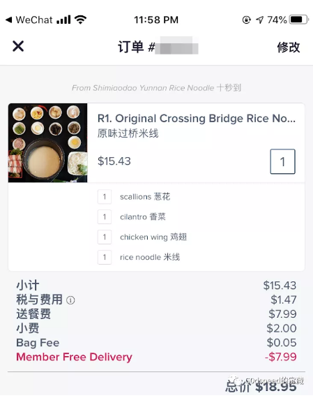 忽聞本地開了一家叫做”十秒到“的云南過橋米線連鎖。作為資 深云南過橋米線食客,怎么能錯過?立馬在夜里11點58分的時候下了一單~