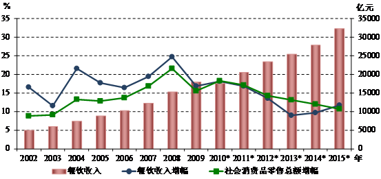 去年是“十二五“的收官之年,中國的餐飲行業繼續在市場結構和商業模式上探索改革創新,餐飲市場實現趨穩回暖。根據中國烹飪協會數據統計,2015年全年實現餐飲收入32310億元,同比增長11.7%,正式宣告進入3萬億的歷史新時期,經過行業洗牌和探索調整后,餐飲市場在回歸本質和理性消費的正規上不斷前行,其中大眾化餐飲由于剛需大,成為推動整個行業趨穩回暖的最大動力。