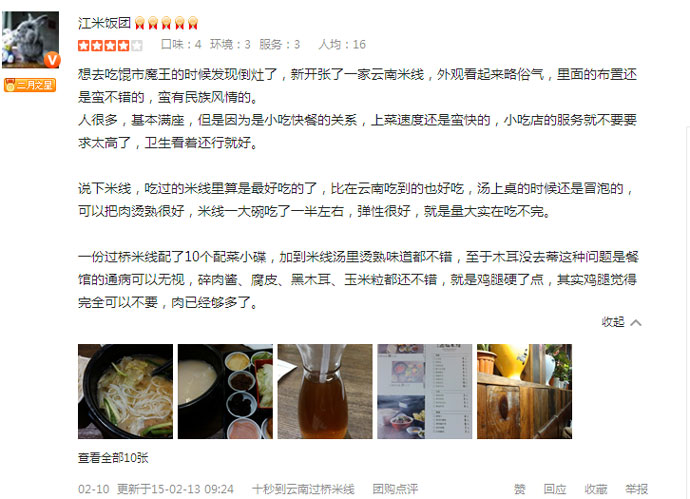 作為一名資深吃貨,也算是吃米線無數,但是卻從未遇到一家極具品質的米線店。說到品質,包括菜色、服務、環境等。但是自從2014年與“十秒到云南過橋米線”相遇,本吃貨實在忍不住肚內的饞蟲,算是深深依賴上她了!大家都說好,才是真的好,看!有圖有真相!
