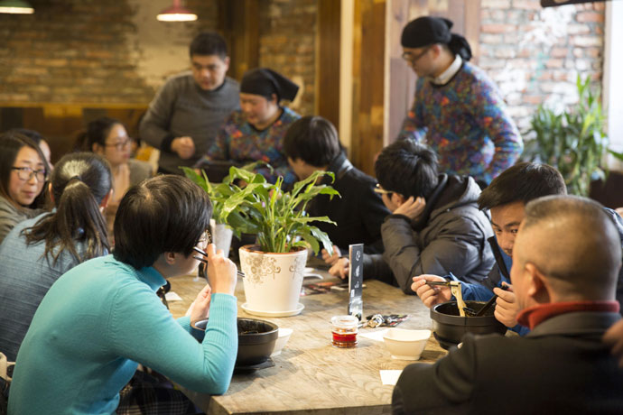 忙碌而親切的服務生穿著極具民族風情的服裝穿梭在店里,就像一道活力四射的民族風情線,不僅給您提供視覺上的享受,還能以親和高效的服務,讓您免于等待的煩躁,在最短的時間內品嘗到云南過橋米線。