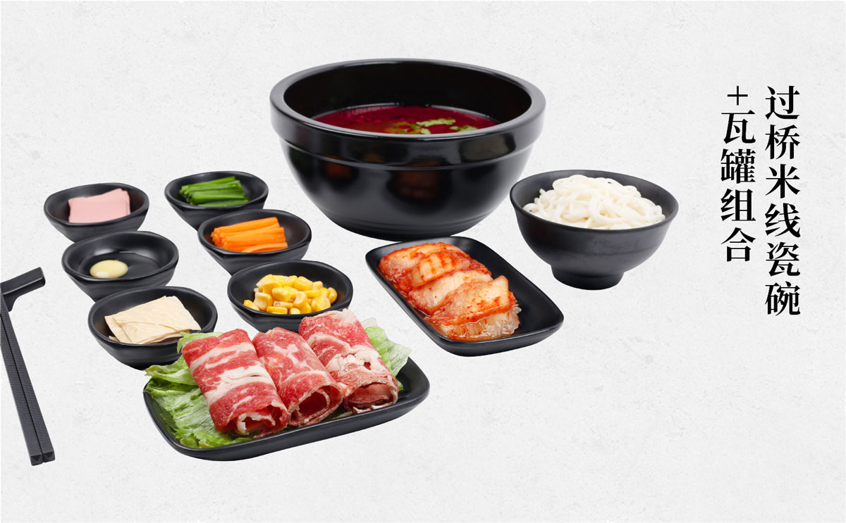 保留傳統(tǒng)過橋米線特色瓦罐拼盤的形式,在保證口味和品質(zhì)不變的前提下增加瓷碗形式,簡化出餐形式并增加翻臺率。