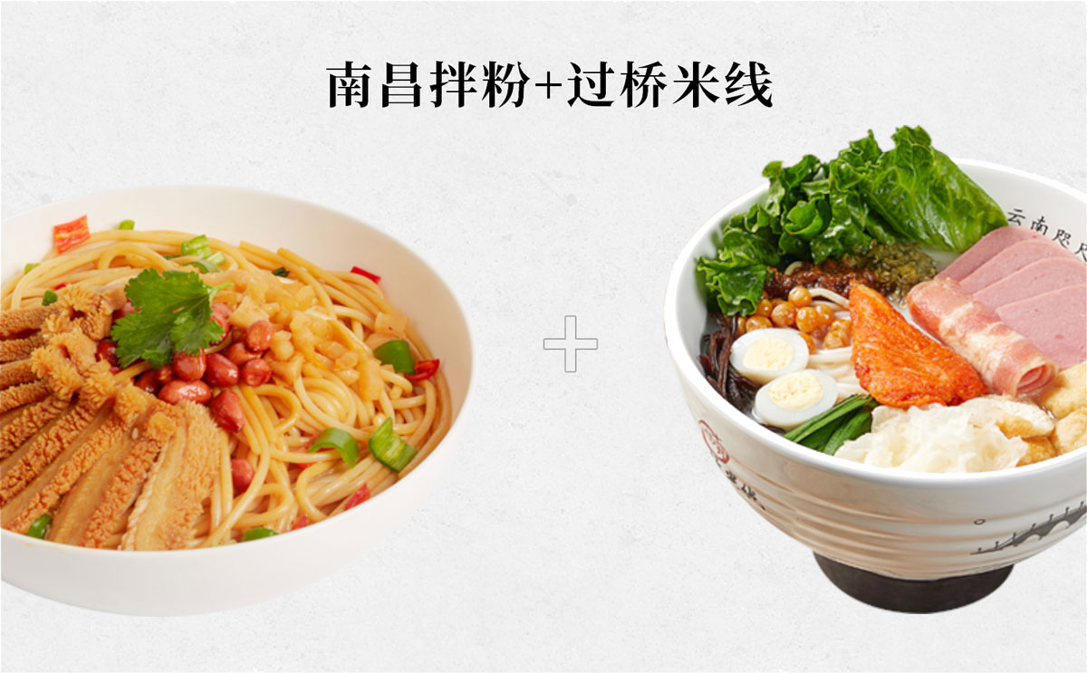 將兩種特色進行融合,過橋米線重在湯,南昌拌粉旨干拌,增加消費者在餐飲類型上的選擇,湯+干拌的形式更為多樣化。